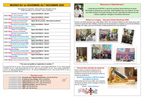 Article publié par response.text()) .then(text => { html = text showLoading = false; })" class="flex justify-center animate-grow-on-hover--small">paroisse Sainte Remfroye • Publié le Vendredi 31 octobre 2025 - 13h00 • 18 visites feuille de novembre 2025 A3 Télécharger 881.6 Ko Télécharger