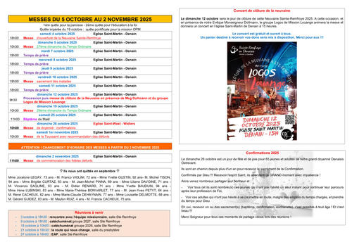Article publié par response.text()) .then(text => { html = text showLoading = false; })" class="flex justify-center animate-grow-on-hover--small">paroisse Sainte Remfroye • Publié le Mardi 30 septembre 2025 - 17h02 • 249 visites feuille d'octobre 2025 A3 Télécharger 723.7 Ko Télécharger