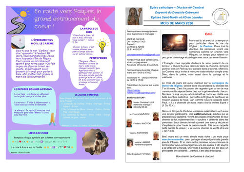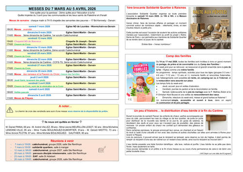 Article publié par response.text()) .then(text => { html = text showLoading = false; })" class="flex justify-center animate-grow-on-hover--small">paroisse Sainte Remfroye • Publié le Samedi 07 mars 2026 • 34 visites feuille de mars 2026 A3 Télécharger 756.3 Ko Télécharger