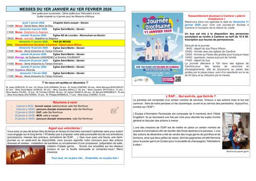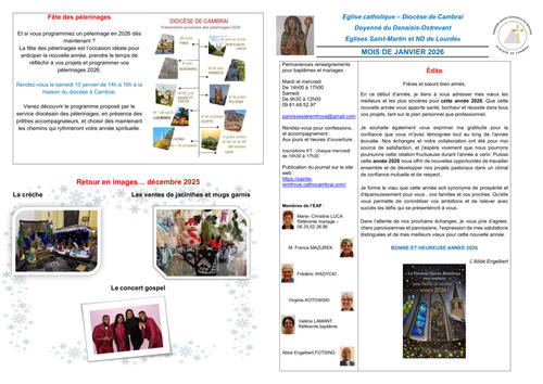 Article publié par response.text()) .then(text => { html = text showLoading = false; })" class="flex justify-center animate-grow-on-hover--small">paroisse Sainte Remfroye • Publié le Lundi 05 janvier 2026 • 16 visites feuille de janvier 2026 A3 Télécharger 633.2 Ko Télécharger